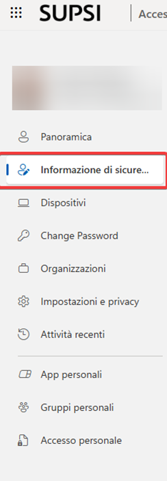 - Nel menu a sinistra selezionare la voce “Informazioni di sicurezza”