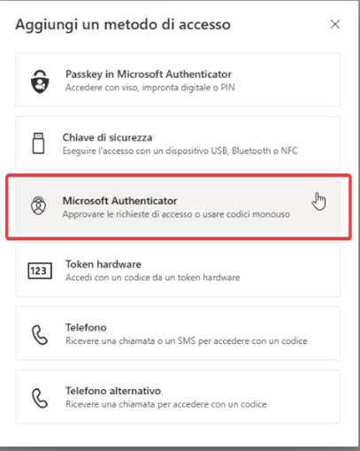 - Selezionare “Microsoft Authenticator”
