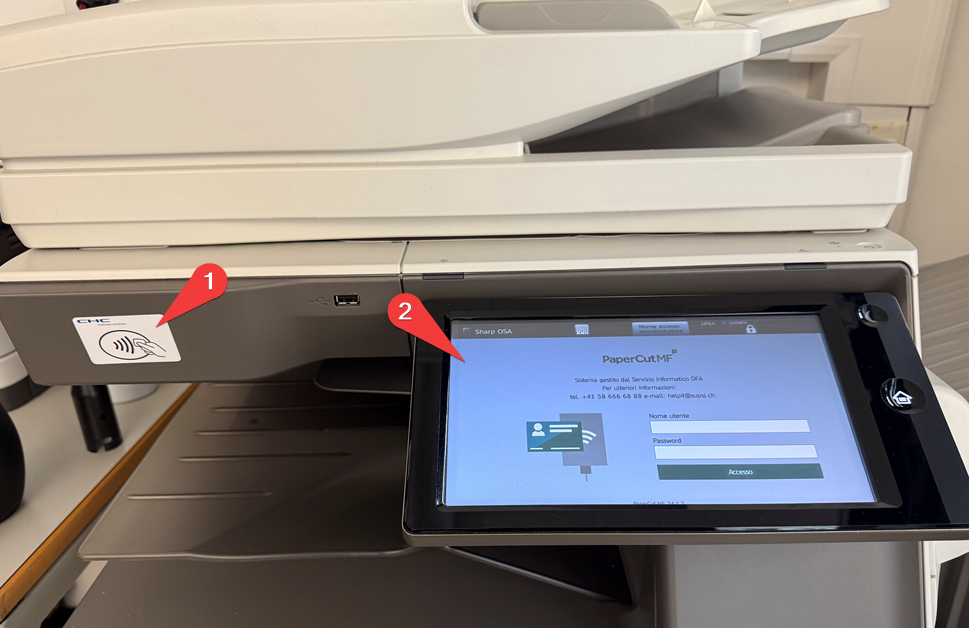 Autenticarsi con uno dei metodi seguenti alla multifunzione SUPSI: